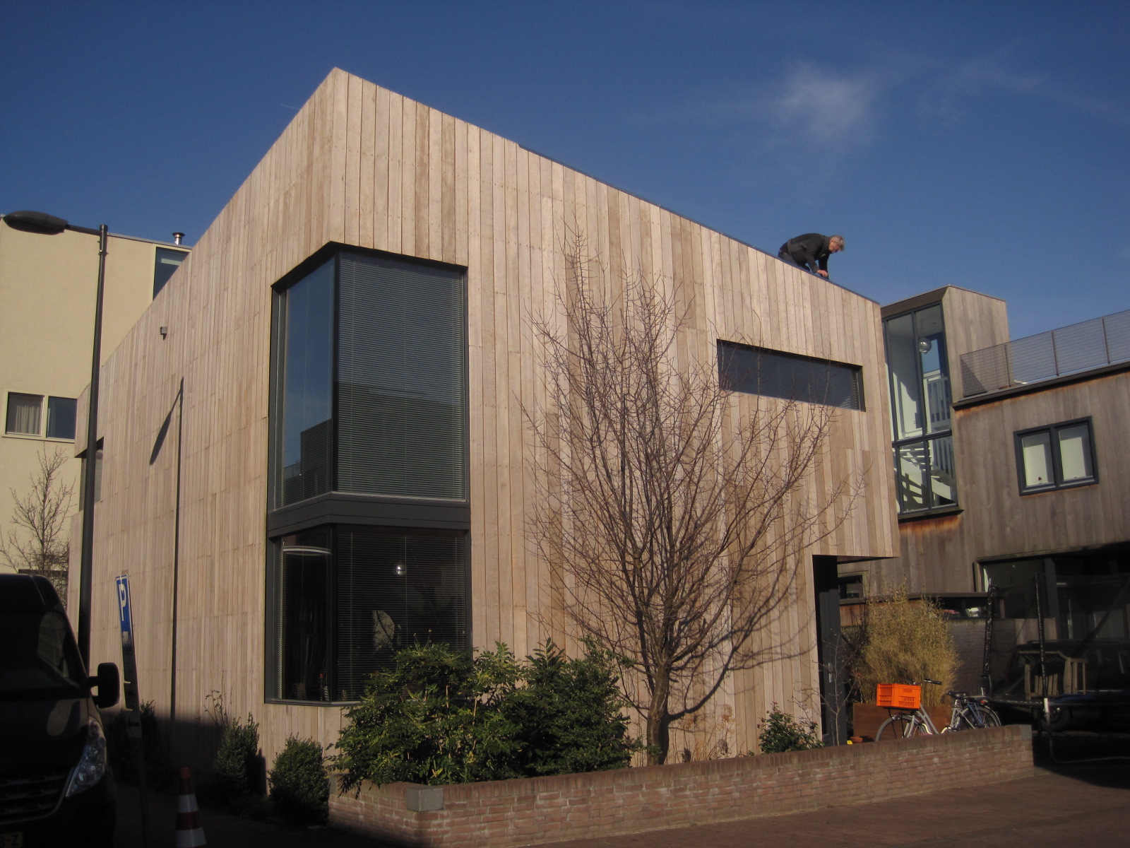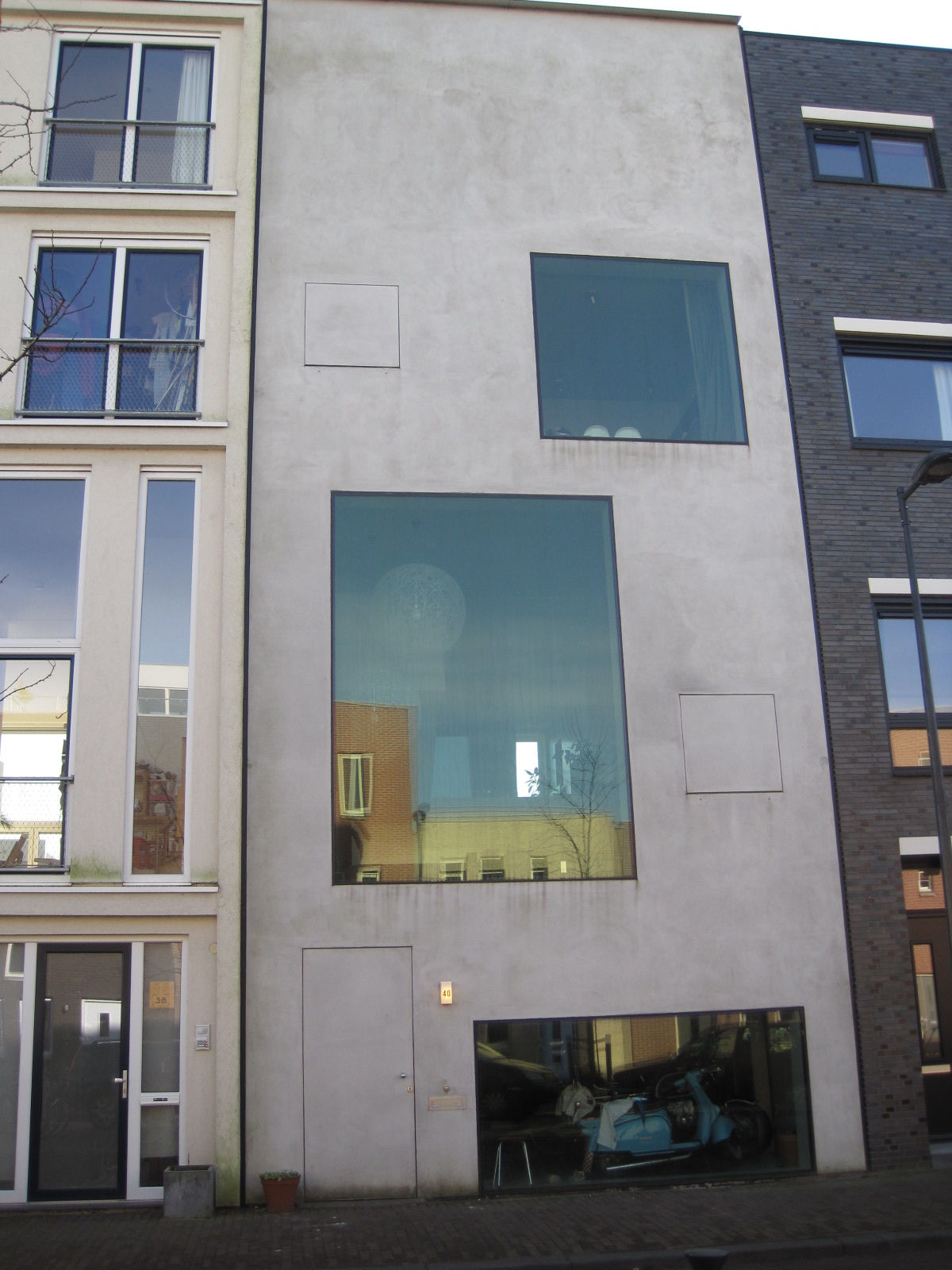 Ook verderop in de Cornelis Zillesenlaan en de Edmond Halleylaan zie ik veel afwisseling en mooie geveldetailleringen, alles binnen het strakke gelid van de straatwand. Ik vind het heel erg leuk dat alle woningen in eigen opdracht gebouwd zijn. Daardoor weerspiegelt elk huis een totaal andere, persoonlijke smaak. Wat mij betreft wel heel wat aantrekkelijker dan de gemiddelde woonstraat.