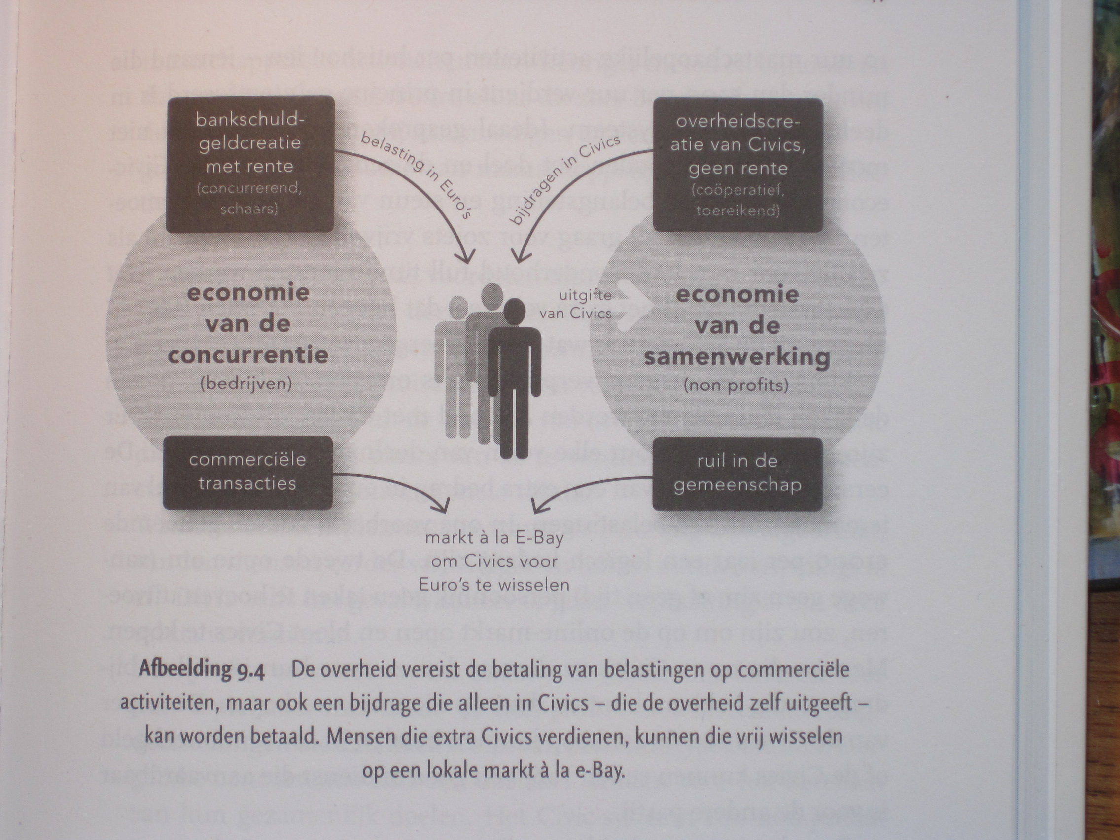 In Geld en duurzaamheid van Bernard Lietaer e.a. staan een aantal interessante voorstellen voor alternatieve geldvormen. Burgers, bedrijven en gemeenten zouden dit geld kunnen gebruiken om er lokaal een duurzame economie mee te stimuleren. Lietaer heeft ondermeer bij de Belgische Centrale Bank de komst van de euro voorbereid. En is door Business Week in 1990 uitgeroepen tot top trader in de valutahandel. Hij schrijft nu als hoogleraar over de wenselijkheid van een “monetair ecosysteem” met vele naast elkaar werkende valuta. Dat zou het monopolie op geldschepping in een nationale munt moeten doorbreken. Hieronder beschrijf ik twee van zijn voorbeelden.