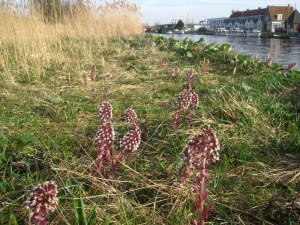Later dit jaar kunnen we veel bloeiplanten verwachten. Maar nu zag ik al speenkruid, groot hoefblad en bremraap.