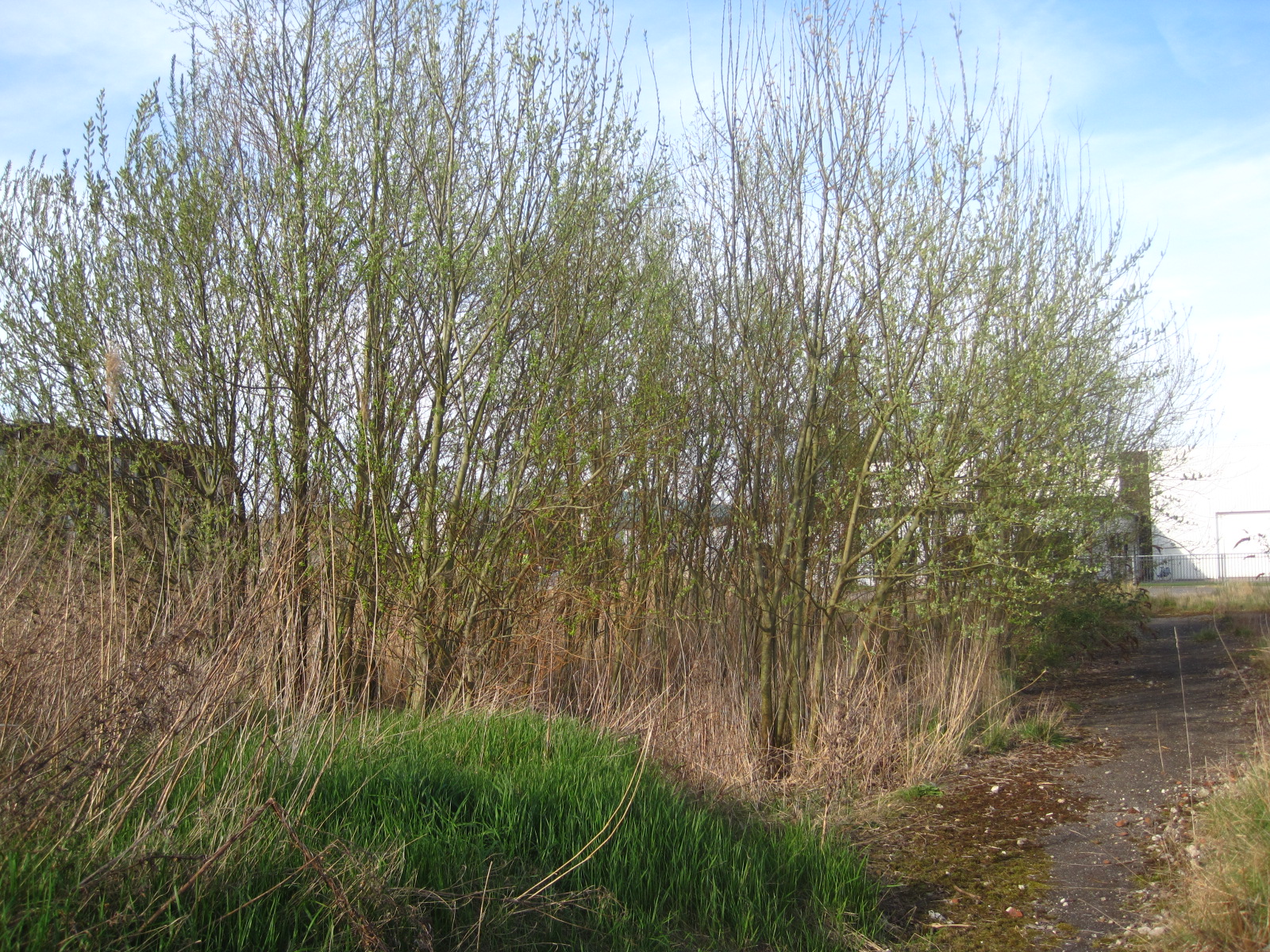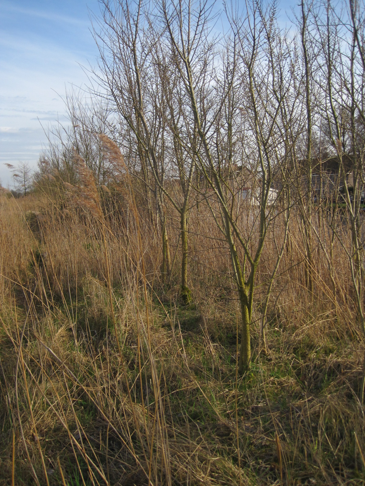 Je ziet aan de Kanaaloever op veel plekken spontane bosgroei. Ik zag onder meer wilg, els en eik. Riet en grasruigten doen het ook goed.