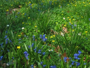 Dinsdag was het alweer mooi weer. Ik liet mijn bureautaken liggen en toog er weer op uit. Halverwege mijn tochtje bestudeerde ik op een bankje in de Algemene Begraafplaats even de KNNV-uitgave over de Stinzenflora van de Hout. Vanaf nu ken ik zodoende het verschil tussen sneeuwroem (met een wit hartje) en sterhyacint (scilla).